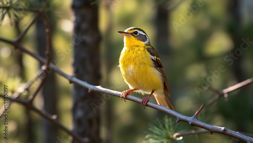 Naklejka premium "Pine Warbler: A Vivid Songbird Among the Pines"