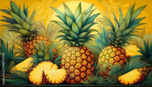 Fototapeta premium pineapple background. Top view of yellow bright background completely filled...