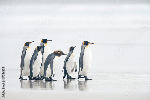 © joangil, Fototapeta premium Pinguinos rey en la playa