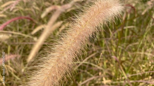 © Blacknew, Fototapeta premium Pink African fountain flower blooming grass field in Thailand