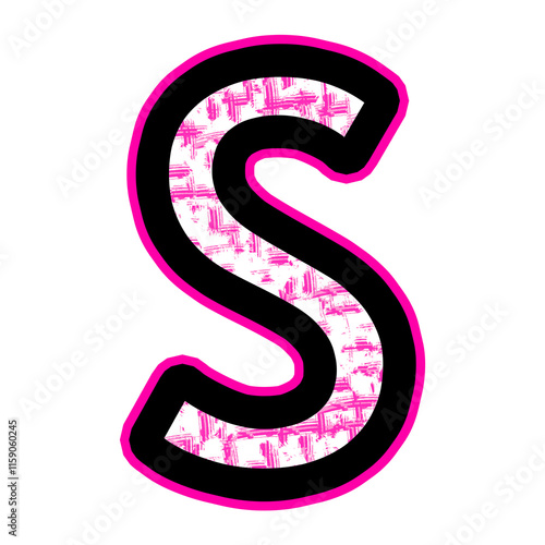 © Graphicyano8, Naklejka premium Pink Alphabet Letter S With A Black Outline And Textured Fill