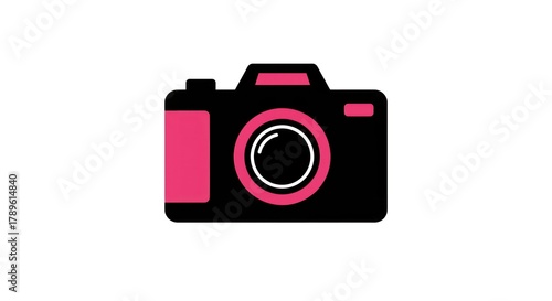 Fototapeta premium Pink and Black Camera Illustration on White Background.