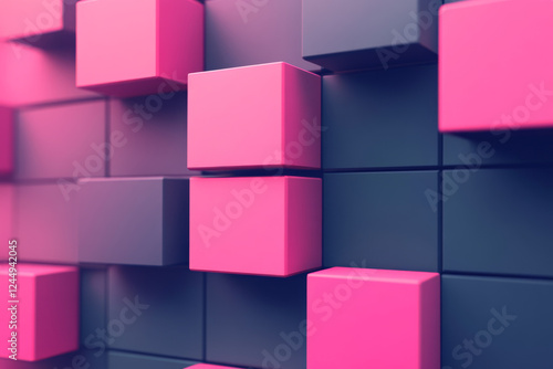 © mingnimit, Obraz premium Pink and black cubes create modern abstract pattern