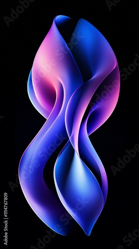 Naklejka premium Pink and blue abstract shapes gracefully twist and intertwine against a stark black backdrop, creating a mesmerizing visual contrast that evokes a sense of fluidity and dynamism