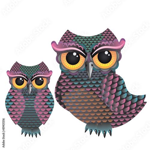 © AnnaPa, Fototapeta premium Pink and Blue Color Owl