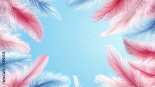 Obraz premium Pink and Blue Feathers Frame on Light Blue Background