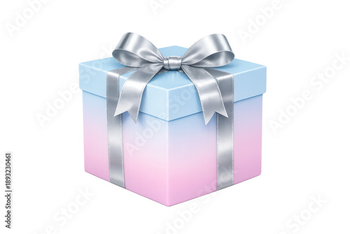 Obraz premium Pink and blue gradient gift box with silver ribbon and bow, symbolizing celebration, gifting, and special occasions