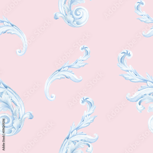 Obraz premium Pink and blue ornate backdrop, watercolor seamless pattern, gender party...