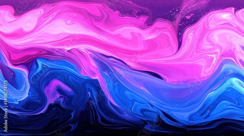 © Sonya, Fototapeta premium Pink and Blue Swirls on Purple and Pink Background with Space