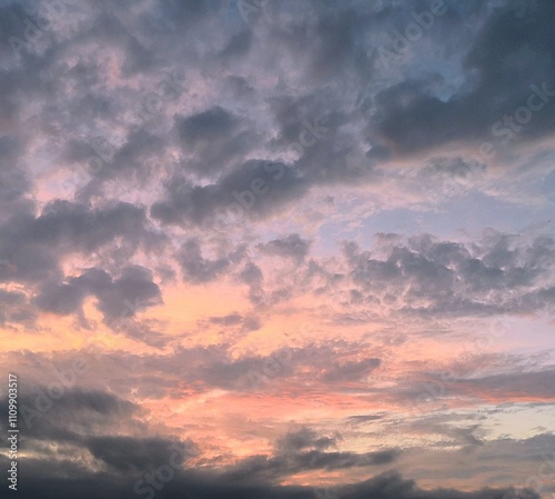Obraz premium Pink and cloudy sunset