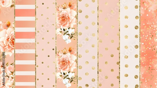© Sagar, Fototapeta premium Pink and Gold, Peach Digital Paper, Blush and Gold Scrapbook Paper seamless