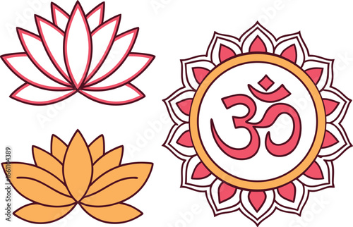 © SMRITI HALDER, Obraz premium Pink and orange lotus Om symbol floral