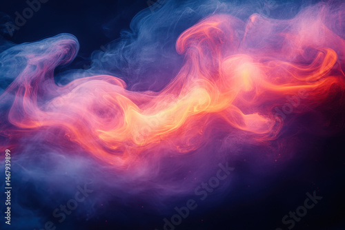 © Rano, Fototapeta premium Pink and orange smoke cloud against black background.