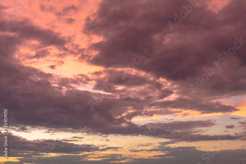Obraz premium Pink and orange storm clouds sunset sky sample