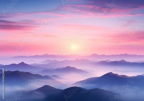 © aparna, Fototapeta premium Pink and Orange Sunset Over Snowy Plain
