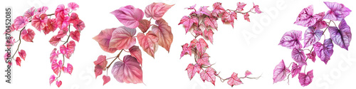 Fototapeta premium Pink and Purple Heart-Shaped Leaves Isolated on White Background, PNG File