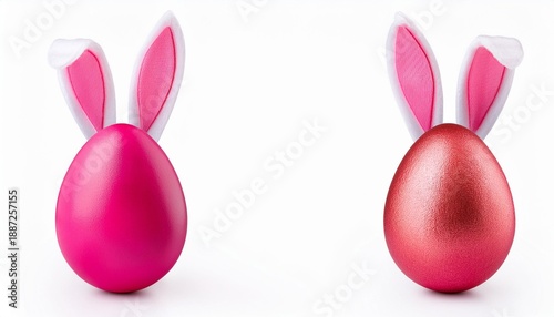 © allali, Fototapeta premium Pink and red easter eggs with bunny ears