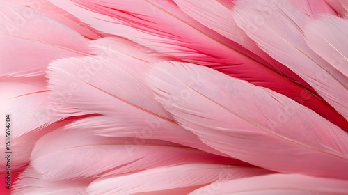 © Sumon, Naklejka premium Pink and Red Feathers Background Texture Soft Pastel Avian Plume