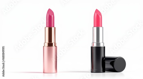 © lnwAI, Obraz premium Pink and Red Lipsticks with Rose Gold and Black Cases isolated on White Background
