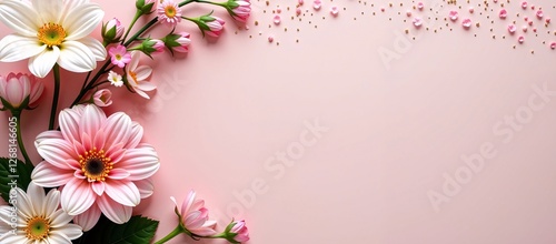 Naklejka premium Pink and White Floral Corner on Pink Background
