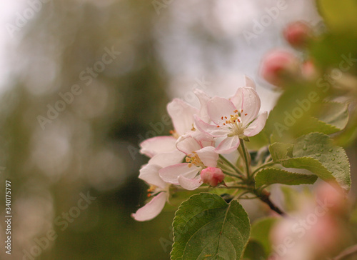 © Elen Nika, Obraz premium Pink and white flowers of apple tree on a natural blurred background
