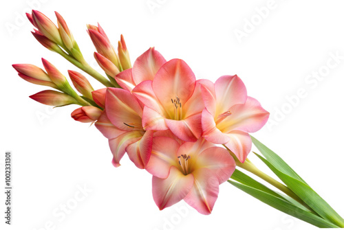 Fototapeta premium Pink and White Gladiolus Flowers Isolated