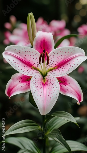 © Nob, Fototapeta premium Pink and White Lily with Spotted Petals