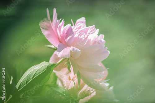 Obraz premium Pink and white peony flowers in bloom in spring garden.