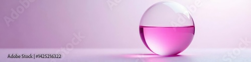 Obraz premium Pink and white periwinkle liquid inside a glass sphere suspended in air, glass, refraction