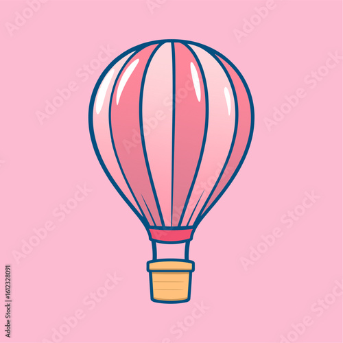 © Renato, Obraz premium Pink and White Striped Hot Air Balloon on a Pink Backdrop