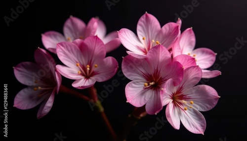 © dadtophoto, Fototapeta premium Pink and white Syringa flowers on a black background, delicate, petals