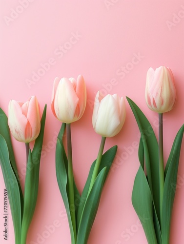 © Matt, Naklejka premium Pink and white tulips on pink background, space for text, card mockup template