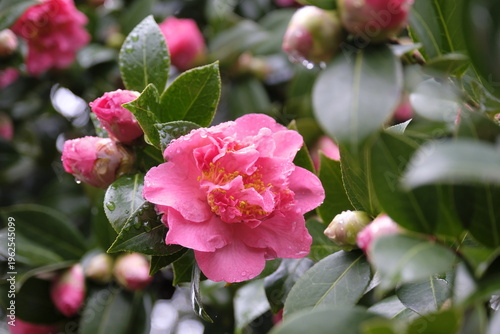 Obraz premium Pink and yellow Camellia x williamsii in flower.