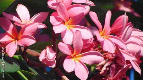 © Afifa, Fototapeta premium pink and yellow frangipani, plumeria flowers