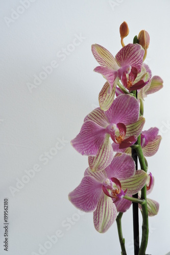 Fototapeta premium Pink and yellow orchids, white background