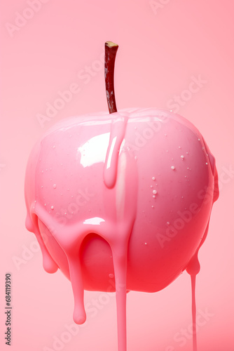© Femmes.Digital, Obraz premium Pink apple with pink dripping liquid. Monochromatic pink color.