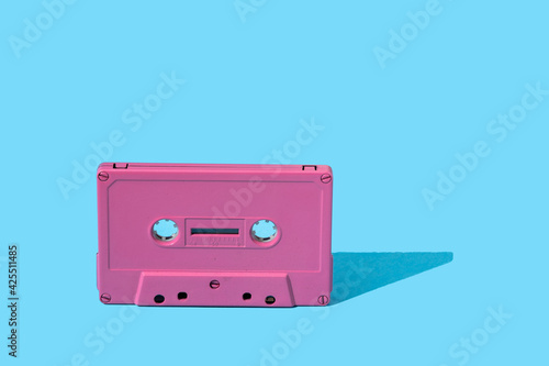 © Jovan, Obraz premium pink audio cassette on a blue background. stock photo