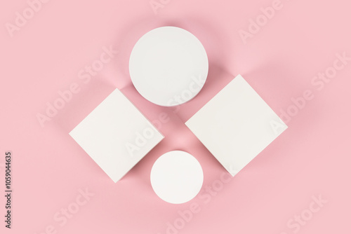 © eliosdnepr, Fototapeta premium pink background for product presentation. Empty podiums. Mockup Top view