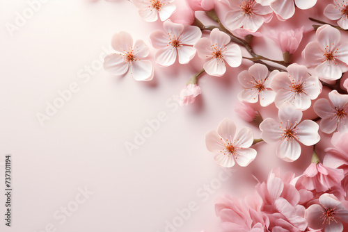 © Veronica, Obraz premium Pink background with cherry blossoms, copy space,ai generated