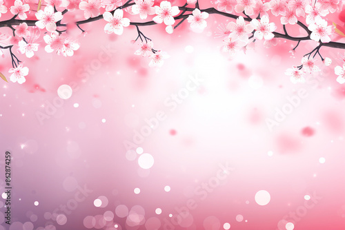 Fototapeta premium Pink background with cherry blossoms, petals, and branches, perfect for...
