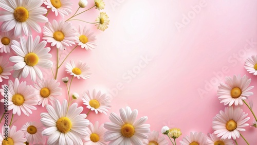 Fototapeta premium Pink background with delicate chamomile flowers for a floral design,...