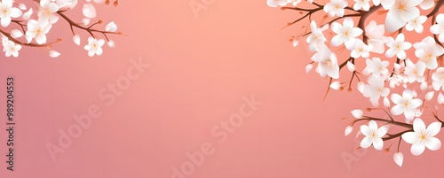 Obraz premium Pink Background with White Cherry Blossoms