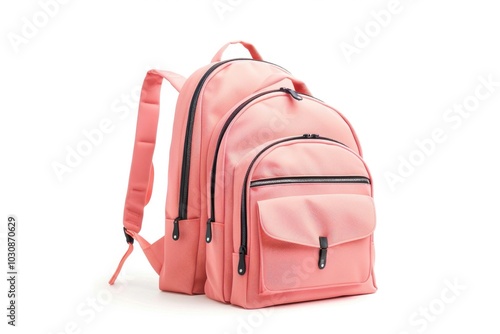 Fototapeta premium Pink Backpack on White Background