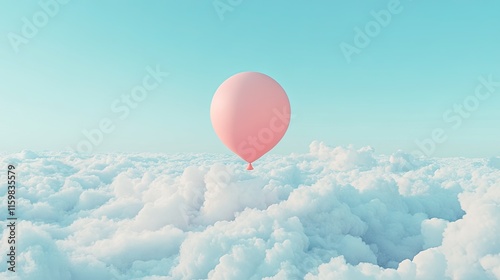 Fototapeta premium Pink Balloon Floating Above Soft White Clouds in Blue Sky