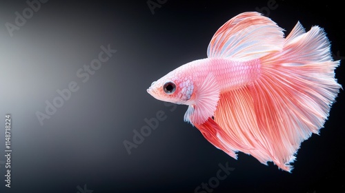 © kinara art design, Obraz premium Pink betta fish with flowing fins against a dark background.