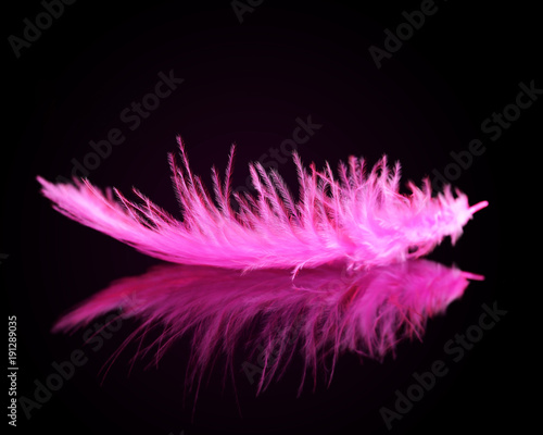 Obraz premium Pink bird feather on black background.