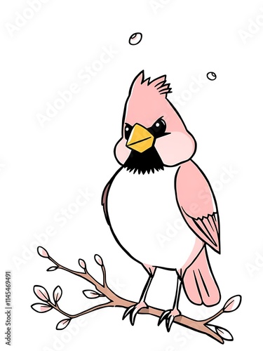 Obraz premium Pink bird perches on branch detailed vector art minimalist style. AI Generated
