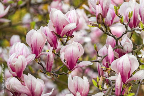 Fototapeta premium Pink blooming magnolias in the spring garden