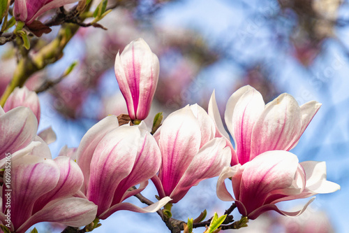 Fototapeta premium Pink blooming magnolias in the spring garden
