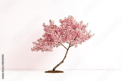 © Rysak, Obraz premium Pink Blooming Tree on a White Background